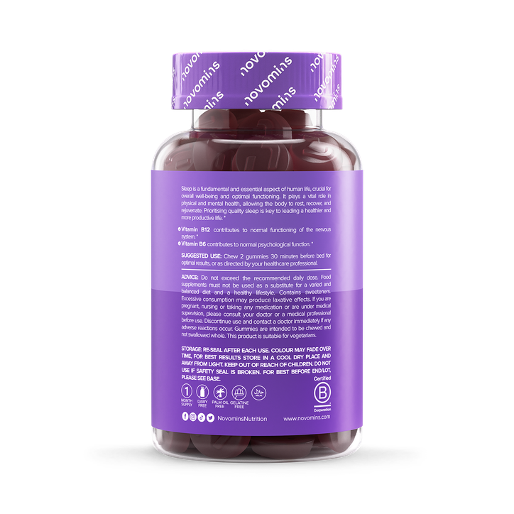 These delicious gummies are scientifically formulated to support your bedtime routine, promoting normal nervous system function with Magnesium and Vitamin B12. They also help reduce tiredness and fatigue, making your nights more restful and rejuvenating. Enjoy a better night’s sleep!